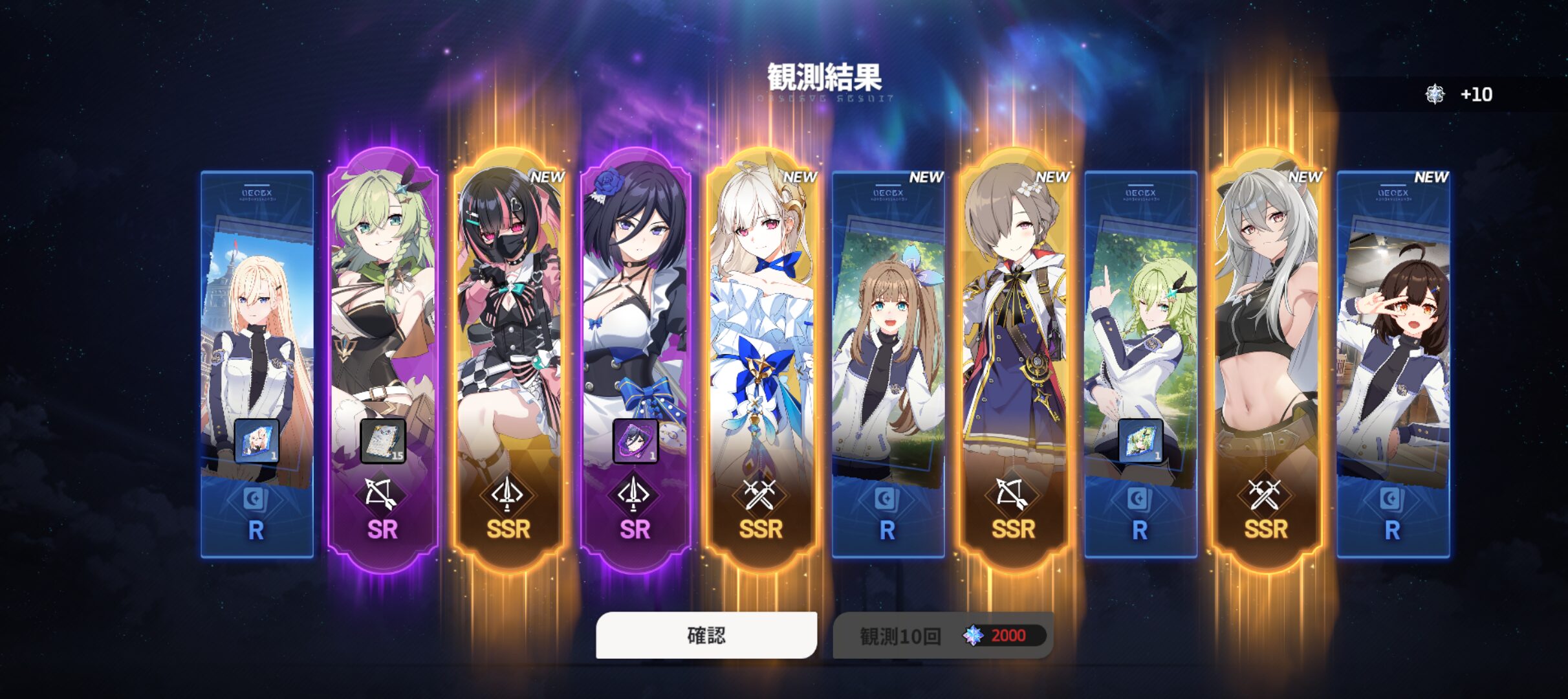 集まったキャラガチャ60連とアルカナガチャ10連を回したら、キャラ凸は進まんかったけど新しいSSRアルカナをゲットできたやで