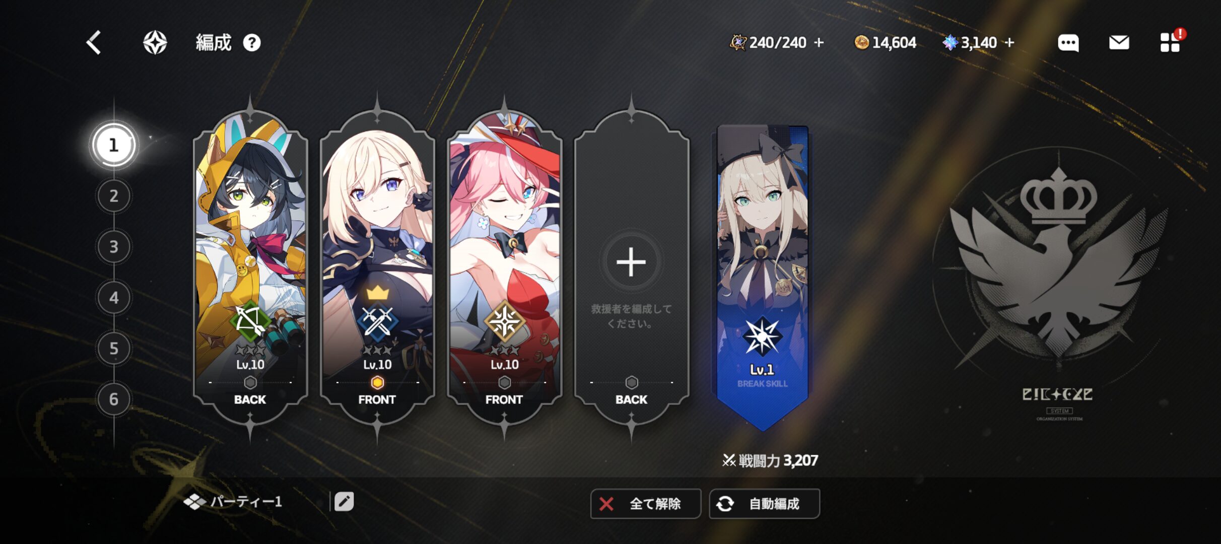 このゲームの編成は4キャラ+ブレイクスキル要員やから1キャラ足りん状態で攻略していくことになるで