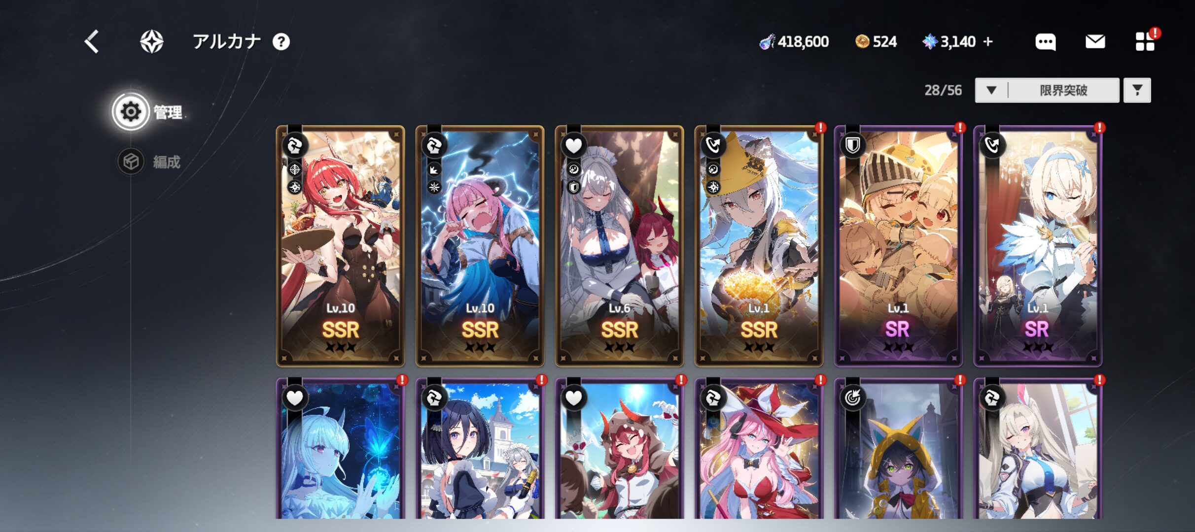 でもSSRアルカナ0枚だったから追加で3回リセマラした最終結果がこれや